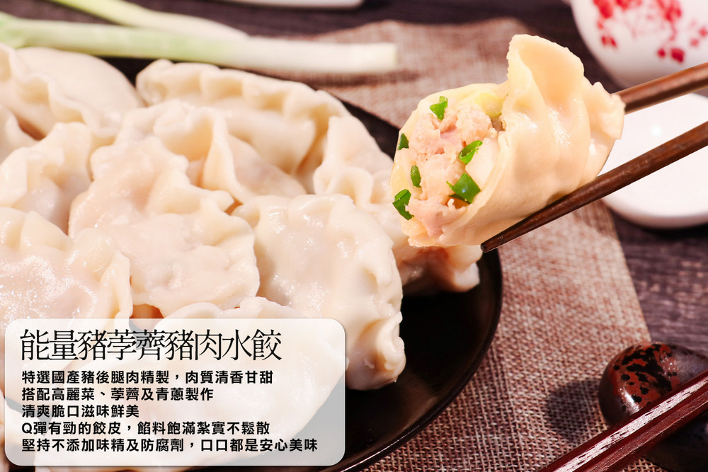 選用國產豬後腿肉碎絞後,搭配高麗菜、荸薺及青蔥製作,粒粒用料飽滿扎實,每一顆都吃的到香氣撲鼻的青蔥味以及豬肉鮮甜味。添加天然食材"荸薺",內餡的滋味更升級! 豐沛的肉汁融合"荸薺"的自然清甜,咀嚼中帶有"荸薺"的爽脆感,完美中和了豬肉的油膩感。肉汁豐沛的豬後腿肉、自然鮮甜的高麗菜、爽脆口感的荸薺、帶麵香的Q彈餃皮,嚴選素材及無添加調味,將美味集於一身,一口就能體會!堅持不添加味精及防腐劑,口口安心讓您大飽口福。荸薺又名馬蹄、地栗,口感清脆,微帶甜味,自古有「地下雪梨」的美稱。中式料理常見食材,特殊的植物纖維非常適合搭配絞肉類、春捲,更口感更加清甜爽脆,口感層次更加豐富!