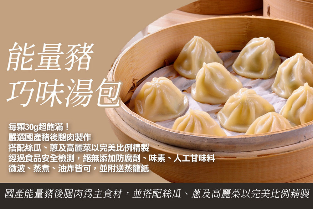 100%使用安全無虞、有國產能量豬後腿肉為主食材,並搭配絲瓜、蔥及高麗菜以完美比例精製。讓您同時吃到頂級豬肉的鮮以及新鮮蔬菜的甜,皮薄餡多、鮮嫩多汁、恰到好處、意猶未盡,故名為「巧味」。微波、蒸煮、油炸皆可,讓您輕鬆與家人共享品味美食的感動。