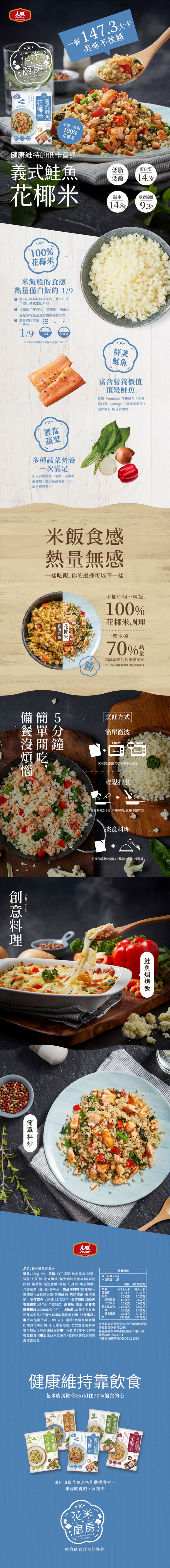 【健身運動首選】 【飲食計畫好夥伴】●使用100%花椰米●運動健身最佳首選●簡單加熱,5分鐘料理上桌