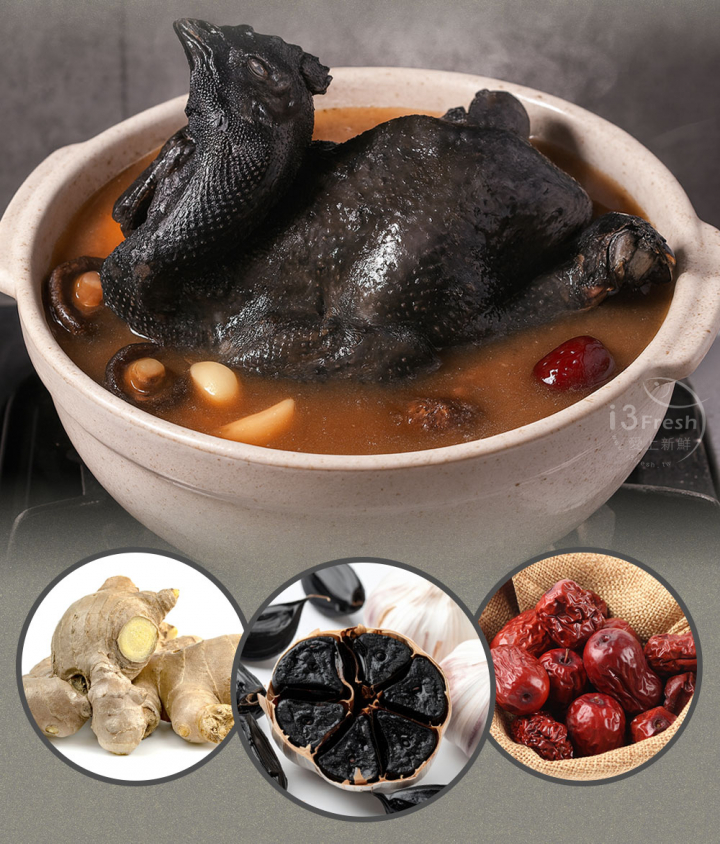 嚴選優鮮烏骨全雞,油膩感較一般白肉雞低,湯頭喝來清爽不厚重,搭配發酵黑蒜、紅棗、老薑等食材慢火熬煮,湯頭溫和滋補鮮甜回甘,適合全家大小美味共享!