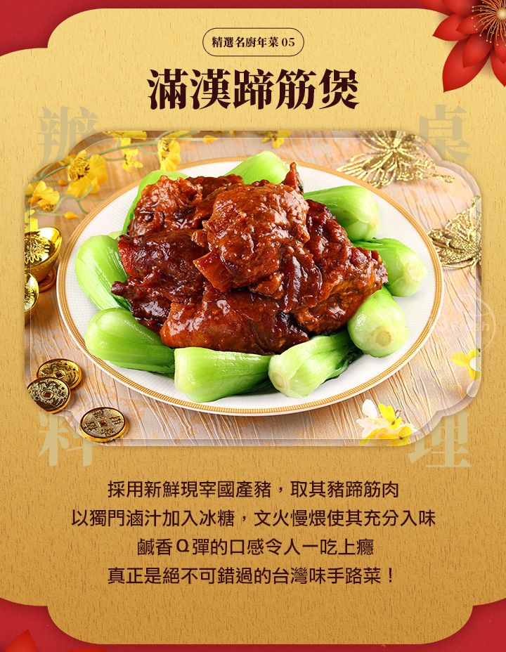 商品成分:豬腳圈(台灣)、水、醬油(大豆、小麥、食鹽、砂糖、調味劑(L-麩酸鈉、胺基乙酸)、著色劑(焦糖色素)、甜味劑(甘草酸鈉))、米酒(水、米、精製食用酒精)、醬油膏(釀造醬油(水、脫脂大豆片、小麥)、水、蔗糖、鹽、乙醯化己二酸二澱粉、糯米、調味劑(琥珀酸二鈉、胺基乙酸、DL-胺基丙酸、5'-次黃嘌呤核苷磷酸二鈉、5'-鳥嘌呤核苷磷酸二鈉)、著色劑(焦糖色素)、品質改良劑(無水碳酸鈉)、酵母粉、甜味劑(甘草酸鈉))、紅蔥頭、蒜頭、蔥、薑、冰糖、紅麴米(紅麴菌、米)、鹽