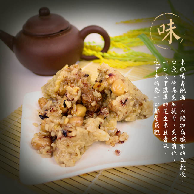 記憶中懷舊的味道,使用樸實豐富的五縠搭配而成,穀香味濃,芳香四溢,軟糯彈牙,清香醇厚,內餡再加上高纖維的五穀後,口感、營養更加提升,更好消化, 一口咬下濃厚的花生米豆香味,吃下去的每一口都是驚艷, 口味更多元化,營養更豐富,更健康。◆◆◆如須指定到貨日請在備註欄備註需到貨日期,如未指定到貨日將於7天內到貨◆◆◆商品名稱:五穀健康養生素肉粽品牌:陳媽媽商品種類:素肉粽內容量( g/ml ) :150g/顆數量:6顆保存方式:冷凍食用方式:加熱食用內容物成分:糯米、花生、米豆、糙米、薏仁、燕麥、蕎麥、麥片、紫米食品添加物:無