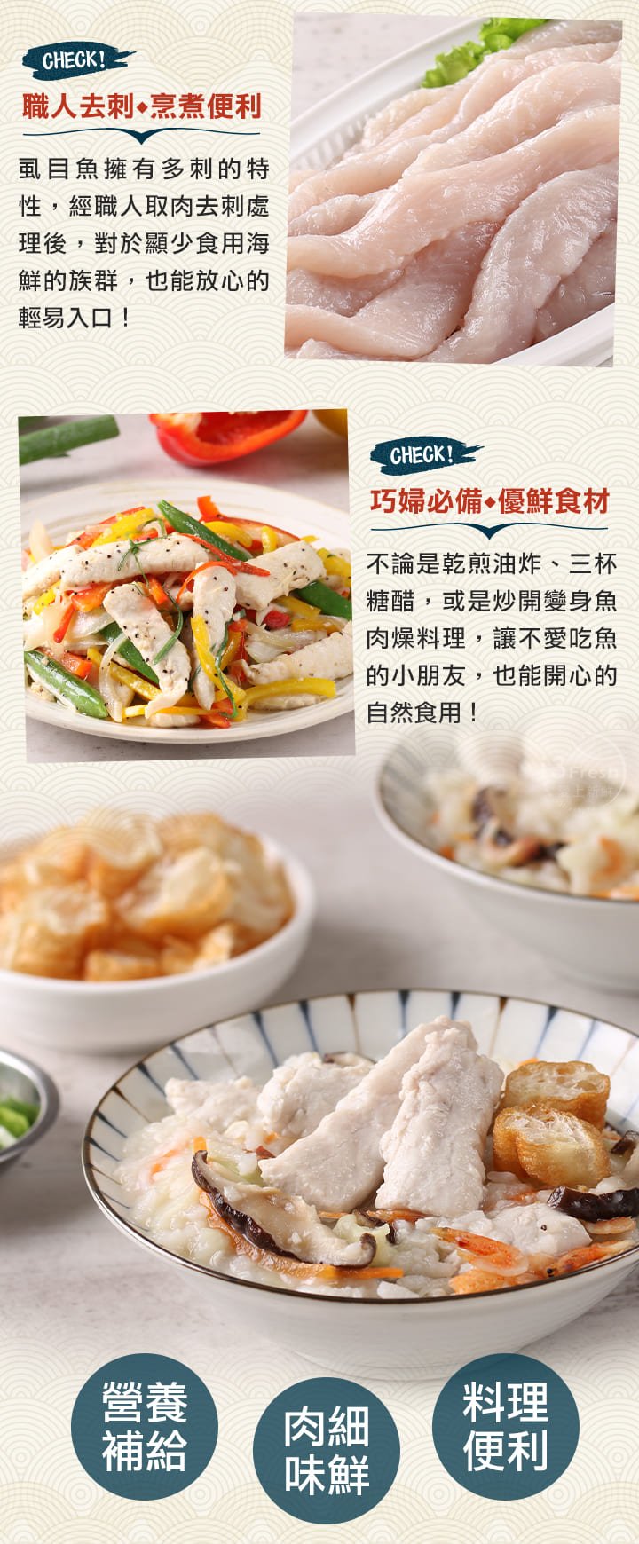 無刺的虱目魚柳又稱為虱目魚菲力,位於魚脊兩側靠近魚肚處所取下的魚條,一條魚僅有兩條里肌肉條,富含蛋白質營養價值高,可說是非常珍貴!