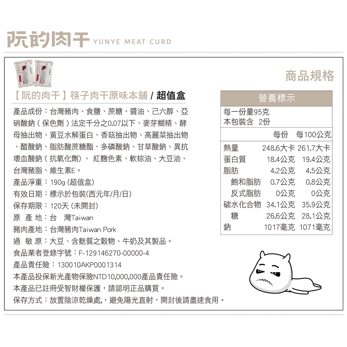 阮的肉干 mini筷子肉干-原味(每盒190g)