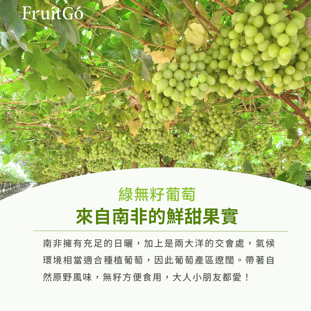 — South Africa Green Seedless Grape —皮薄清脆,果肉飽滿,帶著自然原野風味產地|南非 <二月~四月>規格|每袋約 750克 ±10%