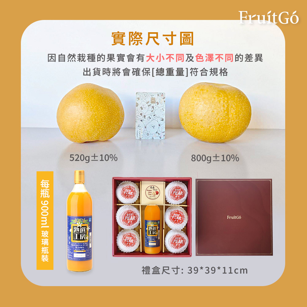 [馥果FruitGo]梨想汁心禮盒-韓梨520g*6顆+蜜柑汁1000ml/瓶