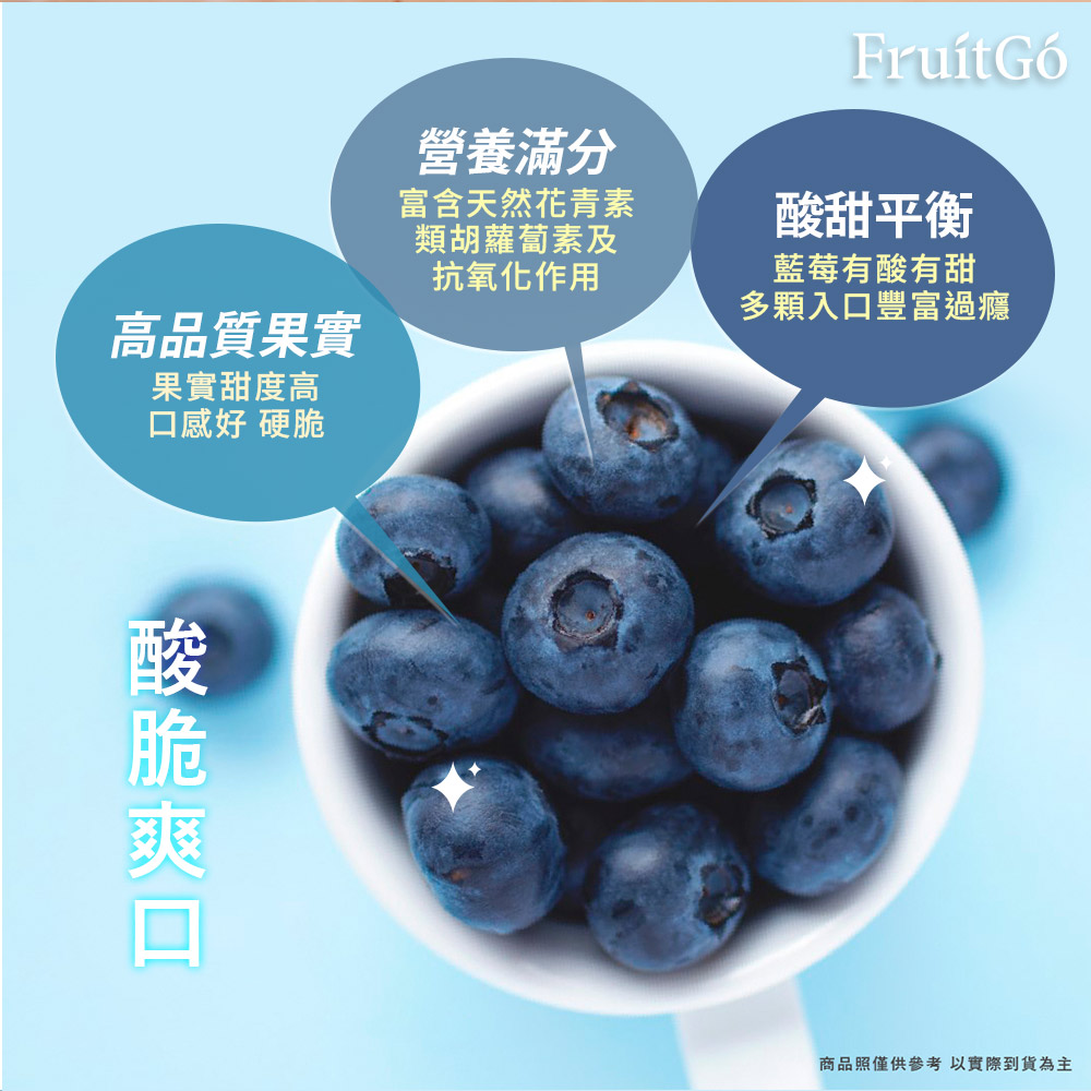 抓起一把鮮食!藍莓有酸有甜,一把多顆入口,酸甜平衡,在嘴裡豐富過癮。夏天天氣熱,可將藍莓冷凍保存,吃起來帶有冰沙口感。藍莓變化多端,可加入沙拉、果昔、優格......無論怎麼吃,藍莓都是方便又美味的最佳選擇。☀️ 保存|建議冷藏保存,提早享用風味較佳**外箱為示意圖,出貨品牌及外箱包裝以當次到貨為準**