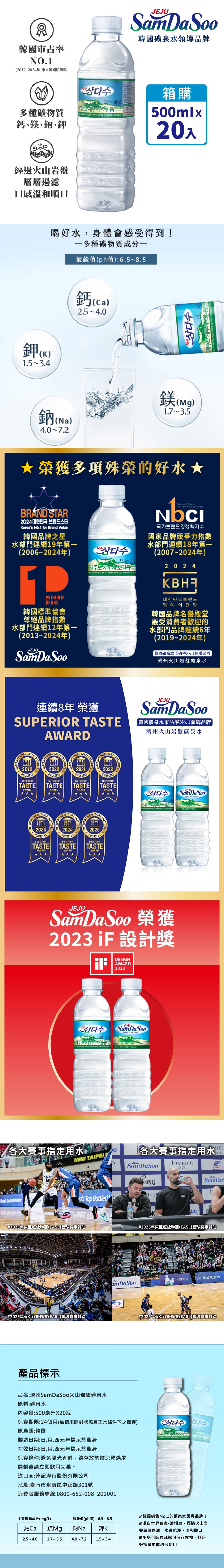 【德記洋行】濟州 SamDaSoo-火山岩盤礦泉水 500mlx20瓶/箱-買就送DINO TAENG 大容量保溫提袋/個