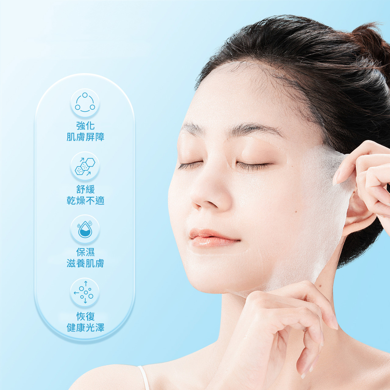強化肌膚天然屏障,並有效保濕、鎮靜舒緩肌膚,改善因乾燥引起不適、泛紅、脫皮,使肌膚健康水潤,散發自然光澤。7X神經醯胺/積雪草/HA玻尿酸/益生菌/葡萄糖/舒緩成分商品:BIOAQUA|7X神經醯胺保濕修護化妝水120ml*1、7X神經醯胺保濕修護霜50g*1、7X神經醯胺保濕修護面膜28ml*5