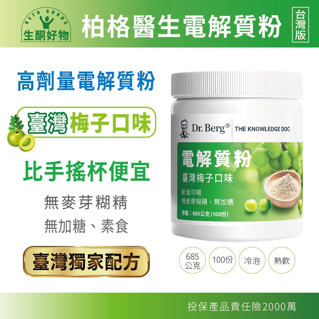 品名:電解質粉.大罐:100杯份,685公克,更划算!.內附量匙(可能被覆蓋,需要找一下)。內容物:氯化鉀、檸檬酸、梅粉(梅、鹽)乳酸鈣、磷酸鎂、甜菊糖苷(甜味劑)、沙漠湖鹽、Concen-Trace專利大鹽湖湖水濃縮粉(72種微量礦物質)內容量:685公克(100杯份大罐裝)有效日期:2027年8月25日本品經Dr.Berg 公司授權生產臺灣梅子口味無麥芽糊精、無加糖食用方法:剛開始請使用半匙電解質粉,加入一杯約250~450CC水中攪拌,依個人口味調整水量;適應以後再酌量增加;泡冷熱水都可以。(梅粉易飄浮在水面,請攪拌).電解粉打開後,裡面有附一支量匙,有可能需要找一下,可能被電解粉覆蓋。保存條件:請務必存放於陰涼乾燥處,瓶口鎖緊,避免潮濕。更好是放冰箱冷藏預防潮濕結塊。(本品未加抗凝結劑,接觸空氣濕氣,可能產生小結塊,不影響品質使用)注意事項:本產品不用於診斷、治療或預防疾病。如有腎臟疾病、心博過緩、高血鉀症(血液鉀含量高),使用前請先諮詢醫生。出貨時會附上紙本發票,如需在發票上打統編,請在結帳時的備注欄,註明您的統編。
