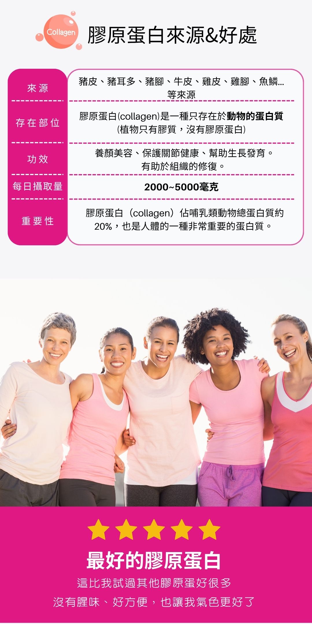 ◆ 高含量膠原蛋白補給