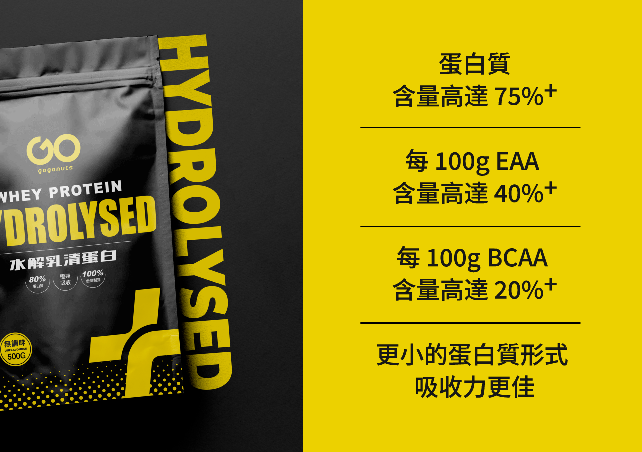 本公司只提供電子發票 下單請在備註提供電子郵件 果果能量水解乳清蛋白- 生椰拿鐵 【內容量】:每包35克,共30包 【保存方式】:避免放置陽光直射、高溫潮濕處,產品拆封後請盡快食用完畢 【建議食用方式】:以1:10比例的常溫水或喜愛飲品沖泡食用,也可依個人口感調整比例 【其他揭露事項】:本產品含有牛奶及其製品,不適合對其過敏體質者食用。 水解乳清蛋白是將大的蛋白質分子預先水解成小分子,因此能夠大幅減少腸胃消化吸收的負擔,水解乳清蛋白特別適合對乳品消化不良或是本身吸收較差的對象飲用,作為蛋白質的補充品,使你更有效率達成蛋白質攝取目標。水解乳清蛋白的蛋白質含量高,約有80-90%的蛋白質。 依照衛福部最新公告,每日蛋白質建議攝取量為體重之1.1倍公克的蛋白質,但是國人普遍攝取不足,因此乳清蛋白是能快速攝取補充蛋白值得好方法,從新鮮牛奶中萃取出來的乳清蛋白含有極高比例的蛋白質,是優質的蛋白質攝取來源,還能同時補充人體必需胺基酸和維生素礦物質等營養。 大分子水解成小分子-水解乳清蛋白適合消化吸收較差的族群 採用國際知名大廠進口之優質乳清蛋白,高達80%以上的蛋白質含量,粉末即溶好吸收,含人體所需胺基酸達25%,口感滑順淡淡奶香(因口味不同,蛋白質%數略有不同,一個口味包裝上營養標示為主)。 誰需要飲用乳清蛋白? - 健身運動者:富含蛋白質及人體必需胺基酸,可用於肌肉生長 - 忙碌外食者:可增加飽足感,獲取所需的蛋白質,達到一日所需營養 - 營養補充者:腸胃吸收較差或無法從食物獲得足夠蛋白質者 水解乳清蛋白特別適合對乳品過敏和消化吸收較差的族群飲用 沖泡方式 以40度以下常溫水,以1:10的水量比例搖勻飲用。可依個人喜好調整水量或加入冰塊,不影響蛋白質攝取量和效果。沖泡乳清時建議水溫不要超過60度,溫度過高會使蛋白質變性而影響口感,想要溫熱喝可以先以一半的常溫水泡開乳清後再酌量加入溫熱水,整體溫度不要超過60度。 使用蔗糖素取代蔗糖,甜度相當卻0熱量 果果能量乳清蛋白全系列產品皆不使用阿斯巴甜,而是使用蔗糖素作為甜味劑,取代蔗糖卻幾乎不含熱量,敬請安心食用。