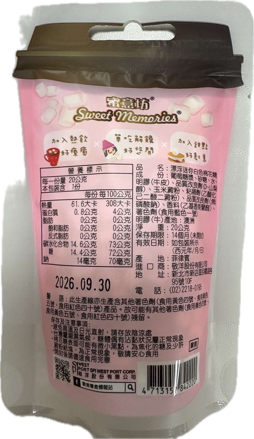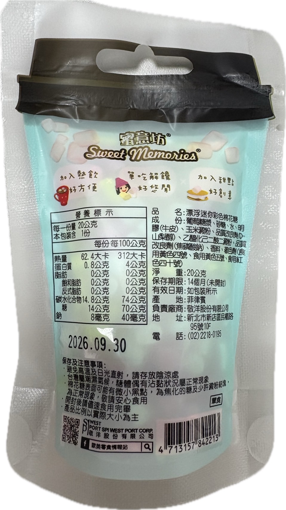 可可亞最佳拍檔 夢幻療癒系的小巧可愛 漂浮迷你(白色/彩色)棉花糖20g [口味任選12包免運組]