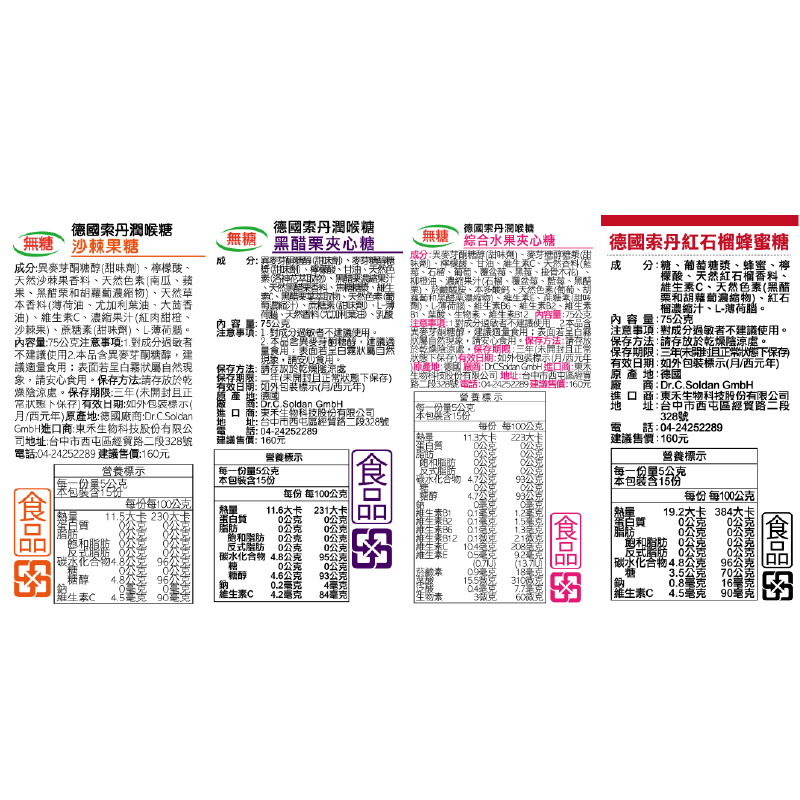 口味共8種 (尤加利薄荷/鼠尾草/檸檬/黑醋栗夾心/沙棘果/薑橙/紅石榴蜂蜜/綜合水果夾心)