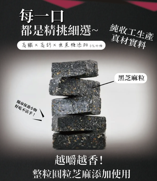 濃郁芝麻香,一口咬下滿滿營養!天然無添加,純粹芝麻香,口感Q軟、不黏牙。✓ 黑芝麻精華 ✦ 低溫烘焙 ✦ 全素食可用成分介紹麥芽糖、黑芝麻、樹薯澱粉、海鹽✨ 無添加固形劑,純淨自然食材製成