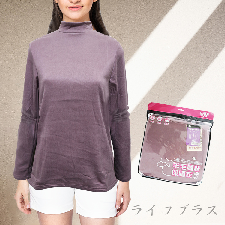 女羊毛蠶絲保暖衣-立領-6863-粉紫色-L號-2件