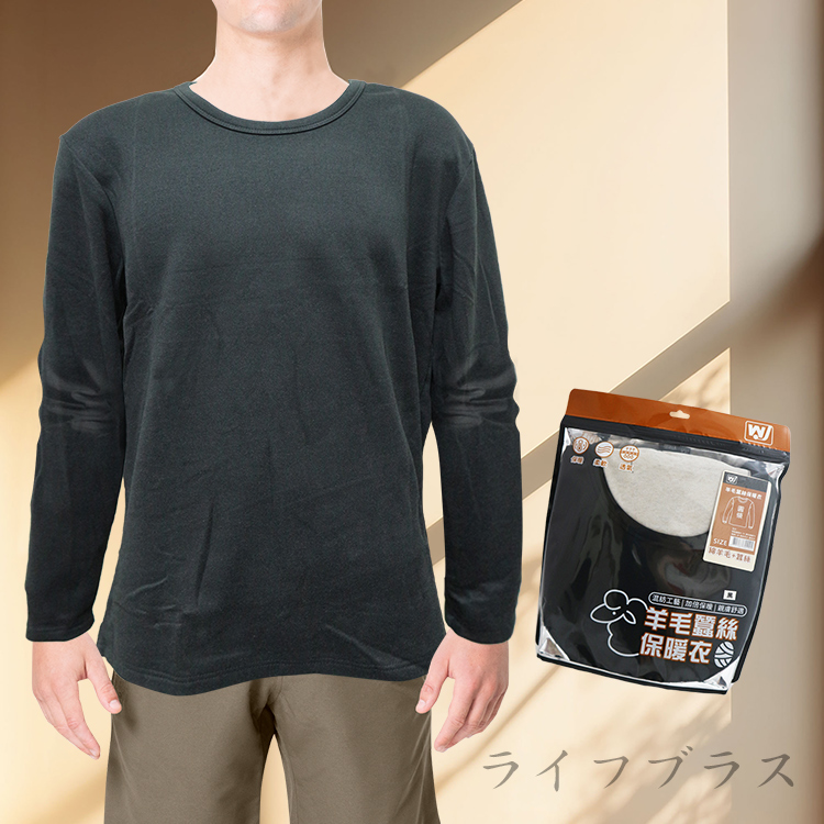 男羊毛蠶絲保暖衣-圓領-6861-黑色-XXL號-2件