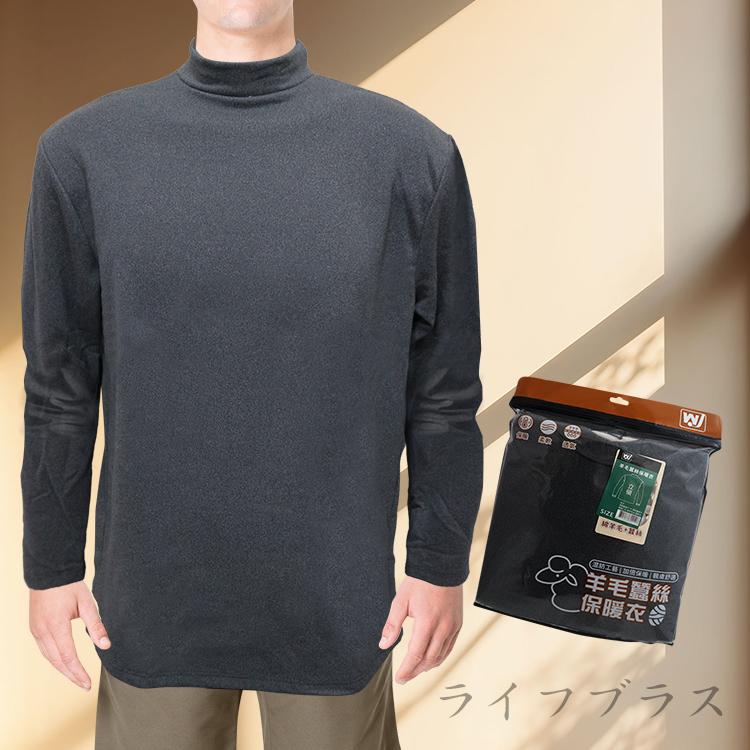 男羊毛蠶絲保暖衣-立領-6865-麻灰色-M號-2件