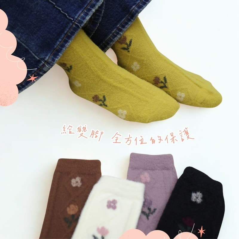 [凱美棉業]冬季限定暖暖羊羔絨襪-暖絨花朵款 女款毛襪 冬日防寒襪