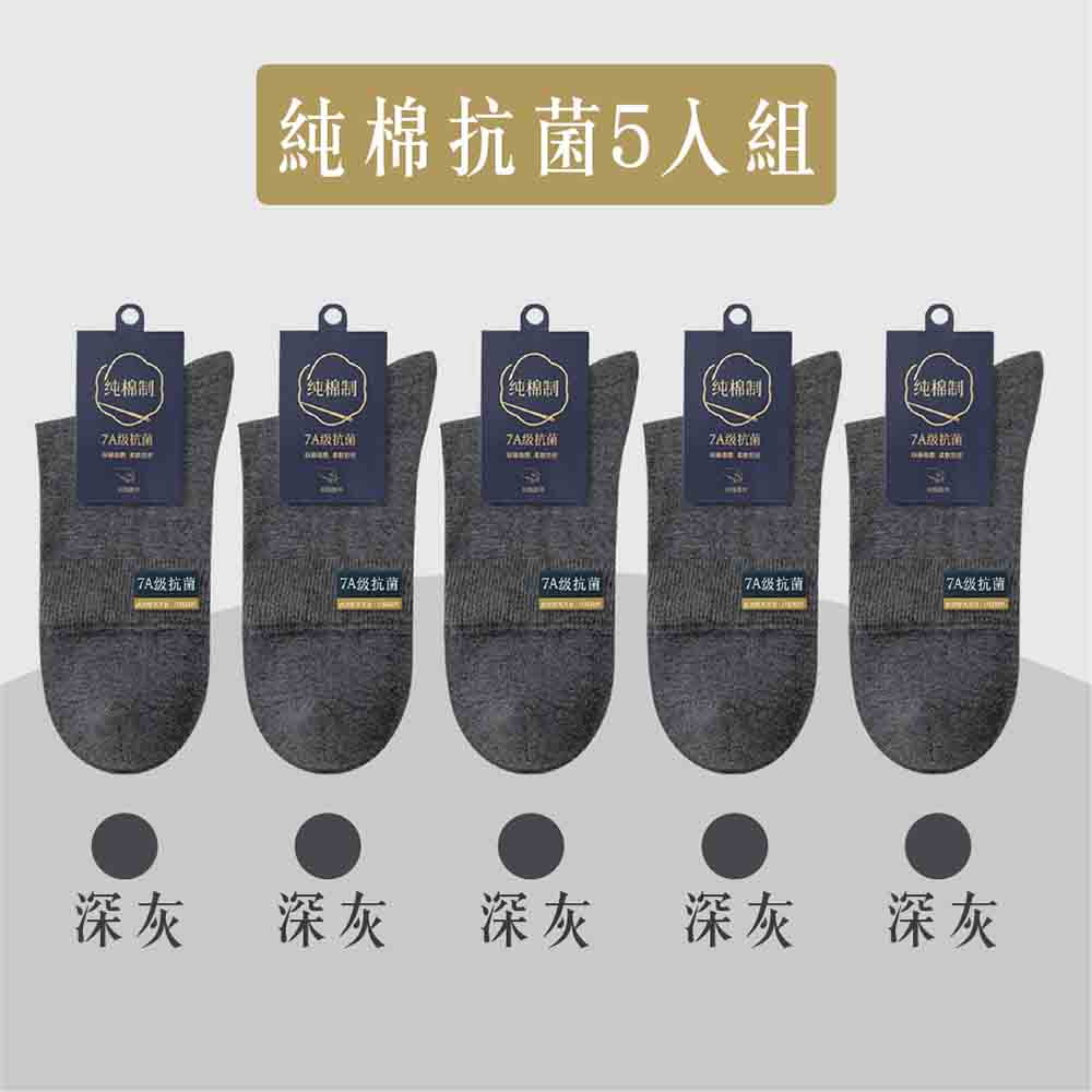 【JAR嚴選】7A抗菌精梳棉中筒吸汗透氣襪子5入組-深灰5雙