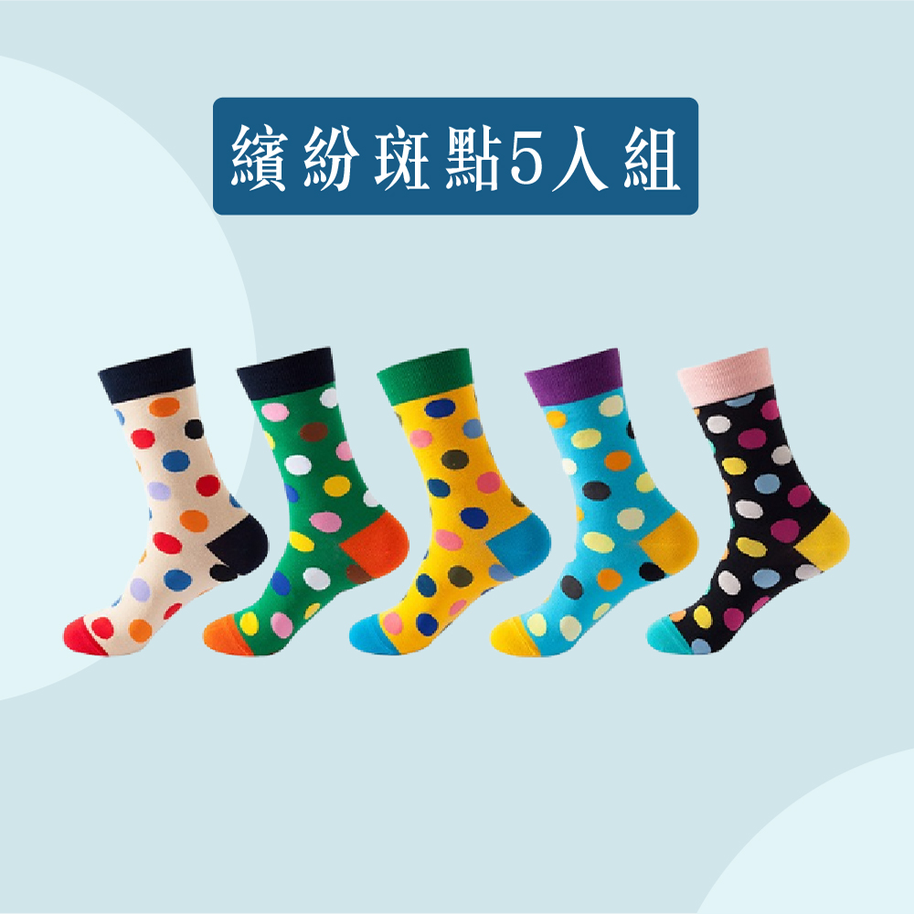 【JAR嚴選】INS男女情侶款潮流時尚圖案趣味個性中筒襪子5入組-繽紛斑點5入組