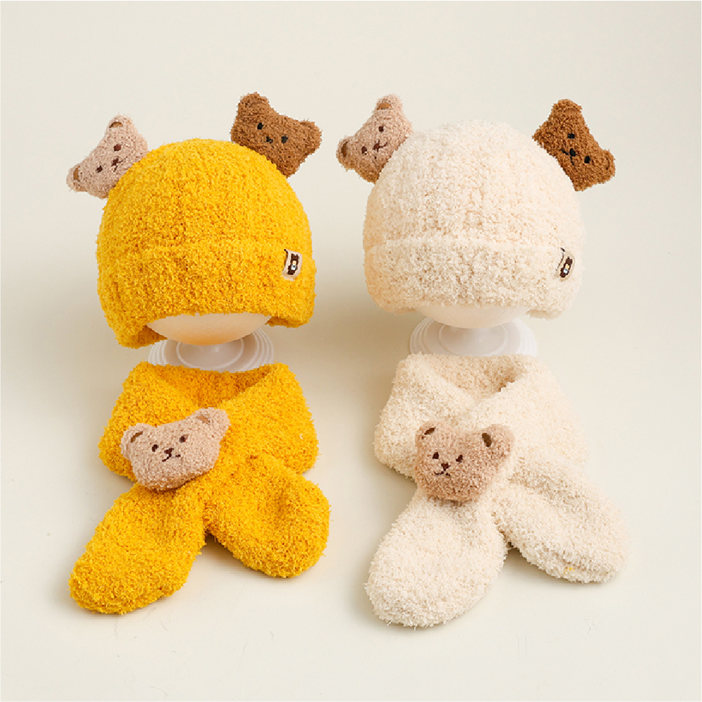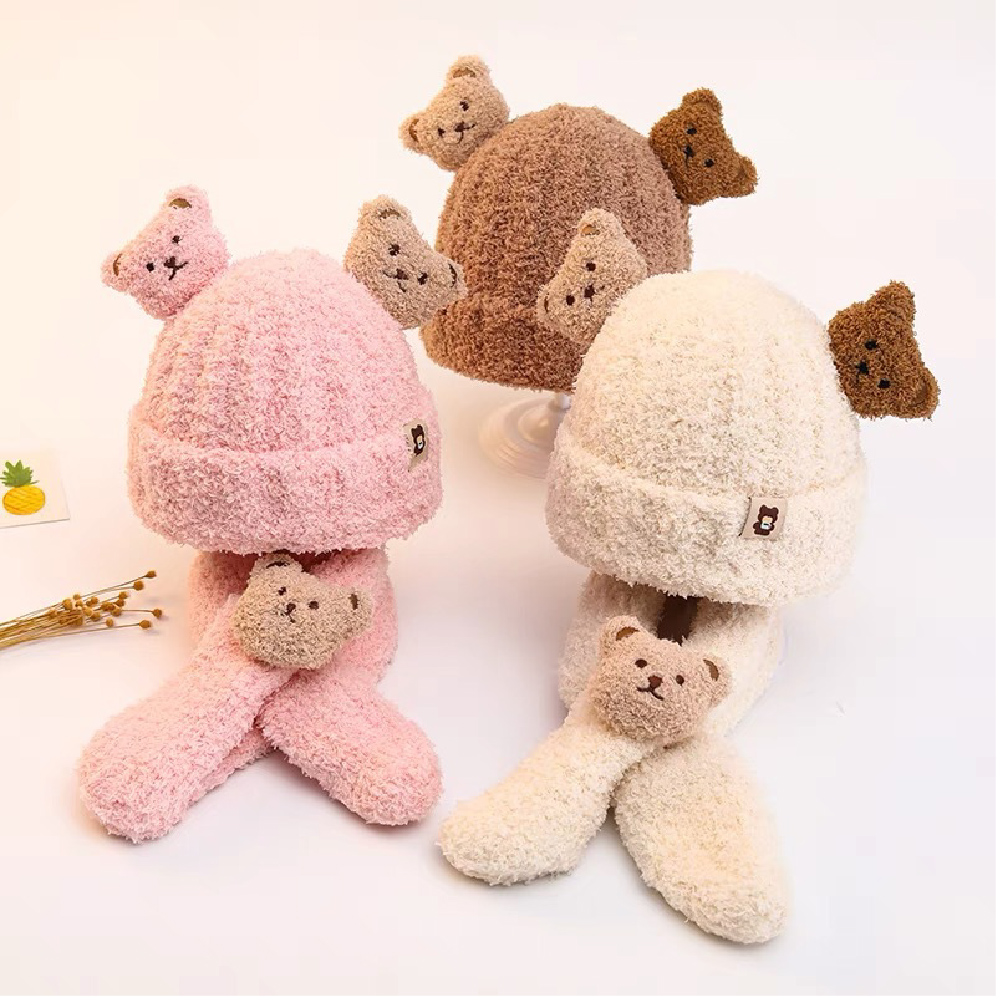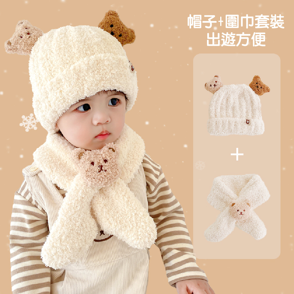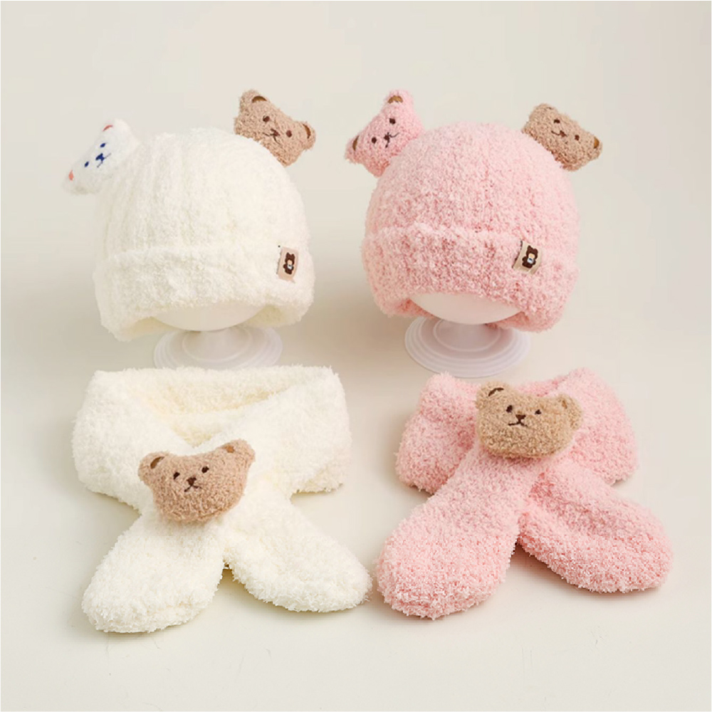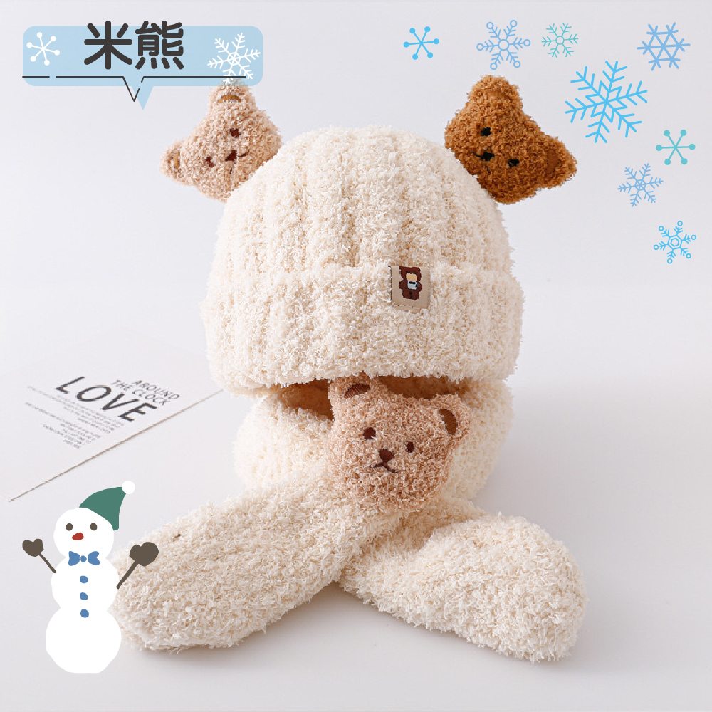 超萌小熊圍巾針織帽套裝
