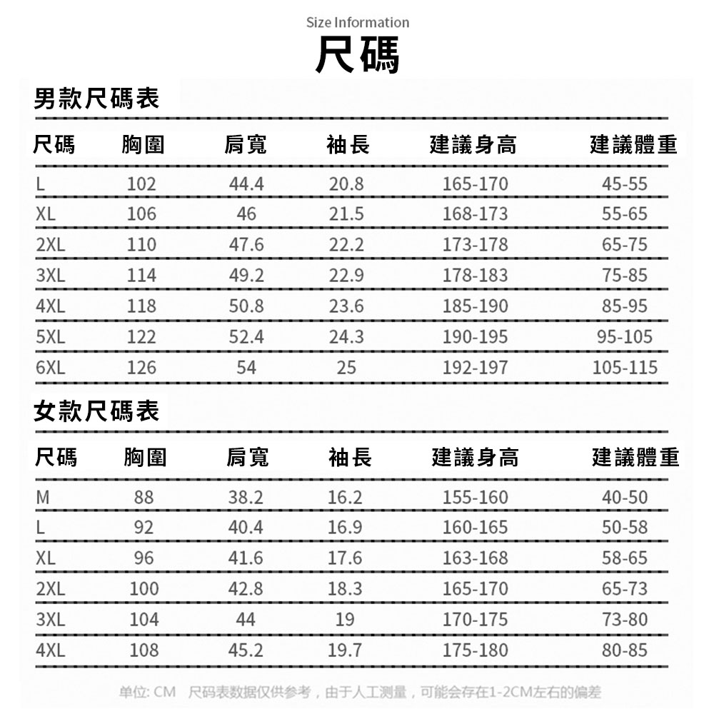 男生:L.XL.2XL.3XL.4XL.5XL.6XL(下單聊聊告知尺寸)