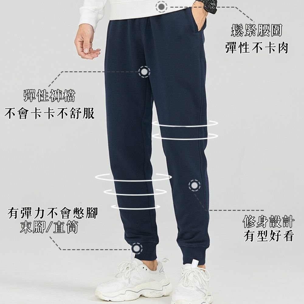 【億子洪】棉質運動褲 運動長褲 棉質休閒褲 藍色束腳-3XL 【P11】