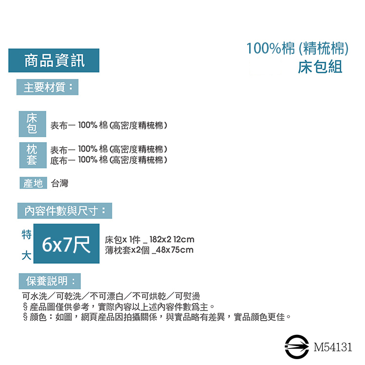 ★內容件數:【雙人特大】床包*1件-6x7尺(182x212cm)、薄枕套*2個(48*75)