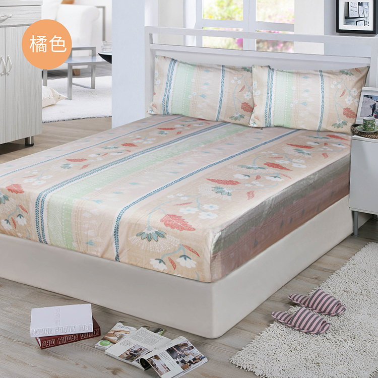【多利寶寢具】FITNESS 精梳棉雙人特大床包枕套三件組-安東尼爾-橘