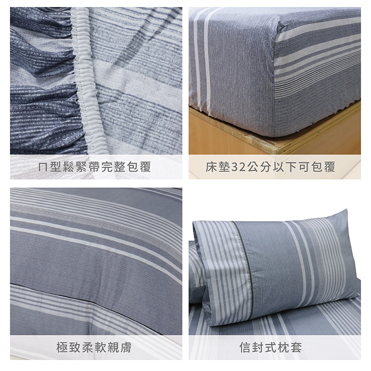 【多利寶寢具】FITNESS 精梳棉雙人加大床包枕套三件組-安德里-灰
