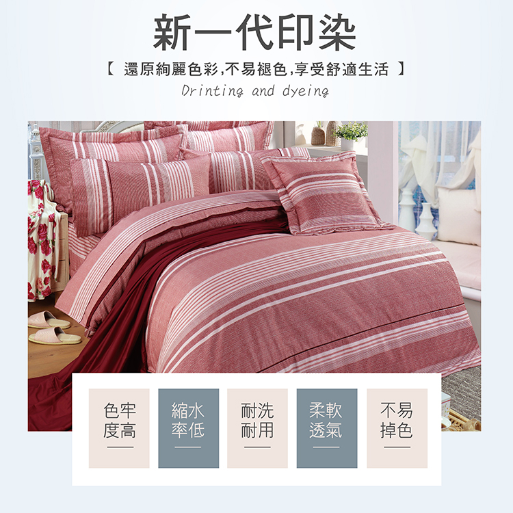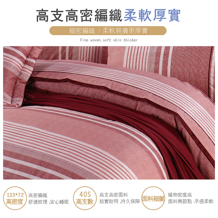 【多利寶寢具】FITNESS 精梳棉雙人加大床包枕套三件組-安德里-紅