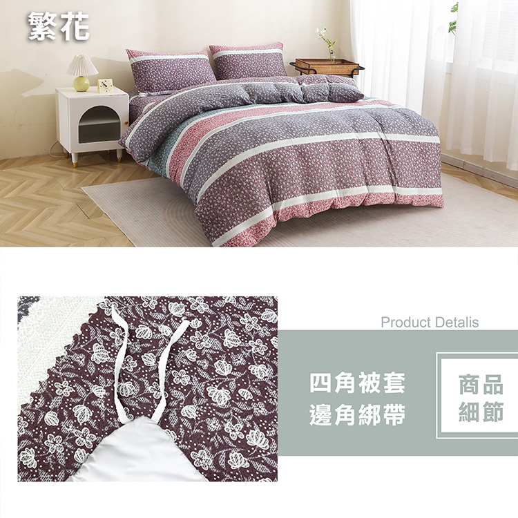 ★內容件數與尺寸:◆【加大】床包x1件-6x6.2尺(180x186cm) 、枕套x2個(45x74cm)、兩用被套x1件-6x7尺 (180x210cm)★產品圖僅供參考,實際內容以上述內容件數為主。★顏色:如圖,網頁產品因拍攝關係,與實品略有差異,實品顏色更佳。★清潔保養方式:可水洗╱可乾洗╱不可漂白╱不可烘乾╱不可熨燙★因材質較細緻,建議可放入洗衣袋後再清洗