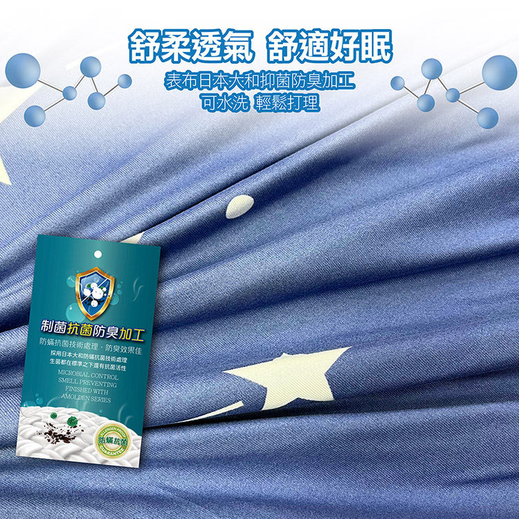 ★材質:【床包】表布-100%聚酯纖維(添加大和抗菌劑)【枕套】表布-100%聚酯纖維(添加大和抗菌劑)、底布-100%聚酯纖維(添加大和抗菌劑)【兩用被】表布-100%聚酯纖維(添加大和抗菌劑)、底布-100%聚酯纖維(添加大和抗菌劑)、填充物-100%聚酯纖維