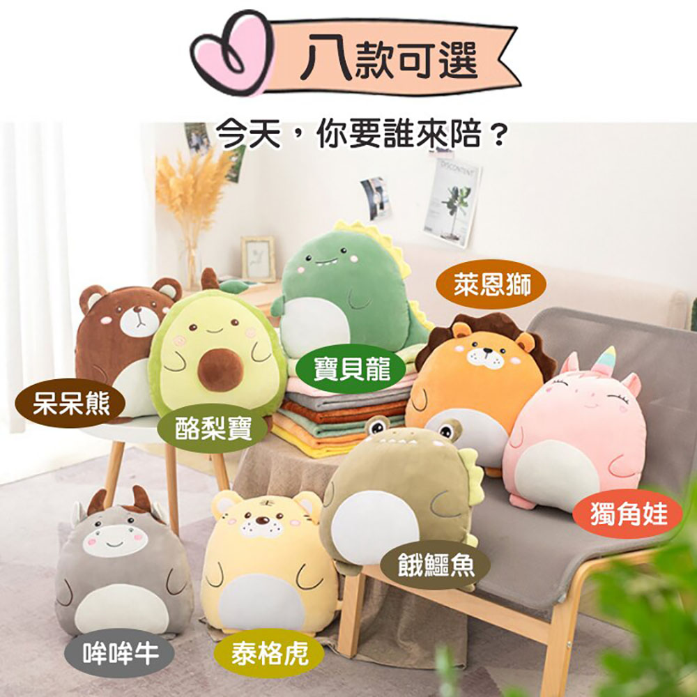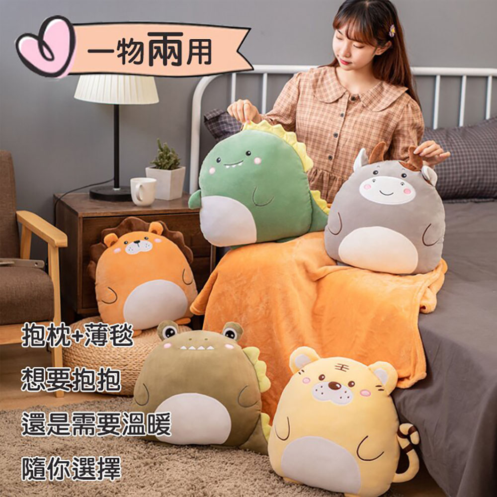 兩用抱枕毯【寶貝龍】 抱枕+薄被 100*170 兩用抱枕 冷氣毯 二合一 彈力超柔 熊 獅子 老虎 牛 恐龍 鱷魚 獨角獸