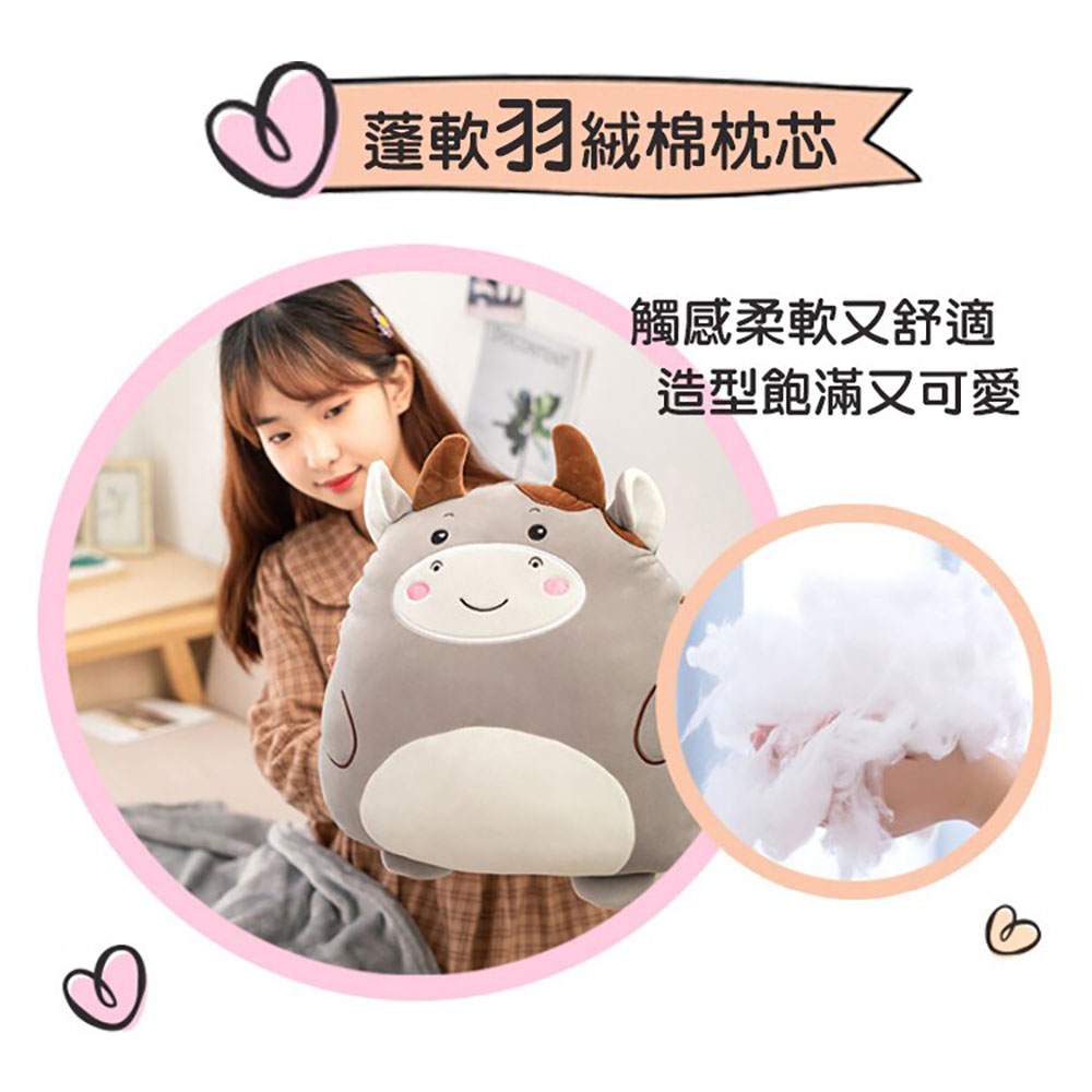 🛋️ 天冷的時候,不只是需要一條毯子,而是需要一點溫暖的陪伴。這顆療癒系抱枕,藏著一條細膩柔滑的薄毯。想被抱的時候,是抱枕;想被照顧的時候,是毛毯。一拉一蓋,溫暖剛剛好。選用升級版法蘭絨,觸感細緻、輕盈服貼,就像一雙溫柔的手,把你包起來。內裡填充羽絨棉,柔軟蓬鬆、不易變形,怎麼抱都不會塌,怎麼洗都不會變樣。不只是造型可愛,細節也用心——布料不掉毛、車線不粗糙,連邊角都乖乖服貼。每個設計都在說:「我會好好照顧你。」冷氣房裡、沙發角落、長途旅行、加班桌邊…它安靜地陪著你,不吵、不鬧,只有剛剛好的溫柔。【產品信息】★★抱枕毯★★◎抱枕尺寸:40*35cm ◎抱枕外部材質:彈超力柔 ◎抱枕內部填充:優質羽絨棉◎毯子尺寸:100*170cm ◎毯子材質:法蘭絨◎清洗方法:建議手洗,或放網袋以『輕柔模式』機洗★★貓屁屁抱枕★★◎抱枕尺寸:45*40cm ◎抱枕外部材質:彈超力柔 ◎抱枕內部填充:優質羽絨棉◎毯子尺寸:130*170cm