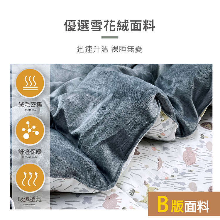 ★針織棉表布,超柔蓬彈輕盈零壓力★雪花絨保暖聚熱力尤佳★如棉花糖擁抱般,保暖透氣不悶熱★雙面不同面料搭配,保暖加溫