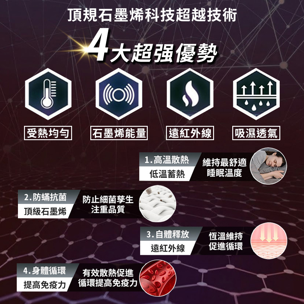 表布材質: 100%聚酯纖維(含24K石墨烯)