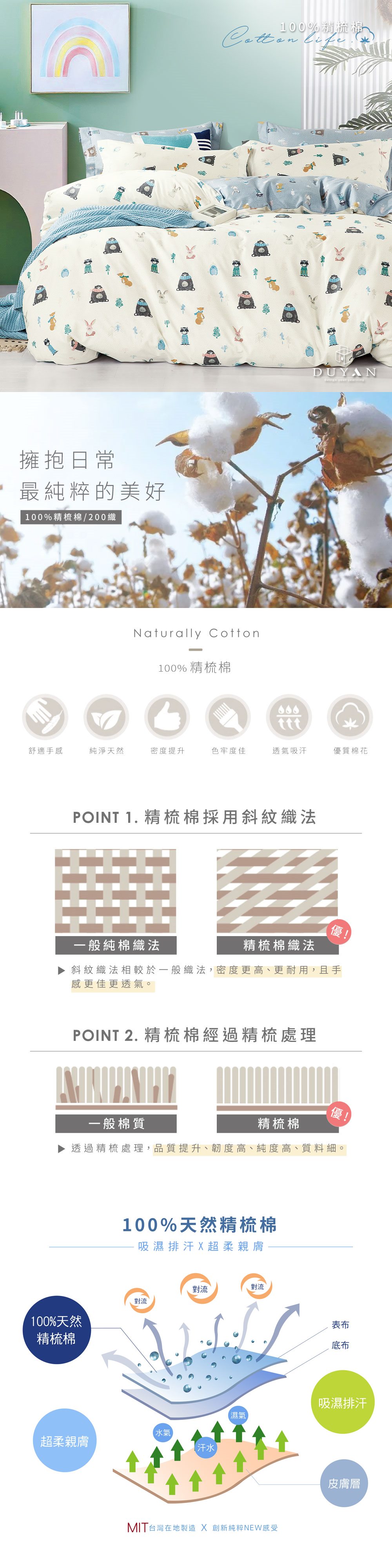 ⭐產品說明 ⭐材質:100%精梳棉床包:採用全包覆式鬆緊帶,可防止床包滑動床包包覆高度:28cm ± 5%兩用被/被套:有四角綁繩枕套:美式信封枕套產地:台灣⭐尺寸說明⭐🎀單人床包二件組1. 單人薄床包(105*186cm) x1 2. 信封式枕套(45*75cm±5%) x1🎀單人床包被套三件組 1.單人薄床包(105*186cm) x12.單人薄被套(135*195 cm) x13.信封式枕套(45*75cm±5%) x1🎀雙人床包三件組 1.雙人薄床包(150*186cm) x12.信封式枕套(45*75cm±5%) x2🎀雙人床包被套四件組 1.雙人薄床包(150*186cm) x12.雙人薄被套(180*210cm) x1 3.信封式枕套(45*75cm±5%) x2🎀雙人加大床包三件組 1.雙人加大薄床包(180*186cm) x1 2.信封式枕套(45*75cm±5%) x2🎀雙人加大床包被套四件組 1.雙人加大薄床包(180*186cm) x1 2.雙人薄被套(180*210cm) x1 3.信封式枕套(45*75cm±5%) x2🎀雙人四件式舖棉兩用被床包組 1.雙人薄床包(150×186公分) x1 2.舖棉兩用被套(180×210公分) x1 3.信封式枕套(45*75cm±5%) x2🎀雙人加大四件式鋪棉兩用被床包組 1.雙人加大薄床包(180*186cm) x1 2.舖棉兩用被套(180×210公分) x1 3.信封式枕套(45*75cm±5%) x2⚠️注意事項⚠️.因布料裁切位置的不同,部份花版可能會與商品圖略有出入,請以收到的實品為主。.因布料裁切可能產生±5%誤差,請以收到的實品為主。.個人衛生用品,如經拆封使用、下水洗滌或拆解以致缺乏完整性及失去再販售價值時,恕不接受退換貨。