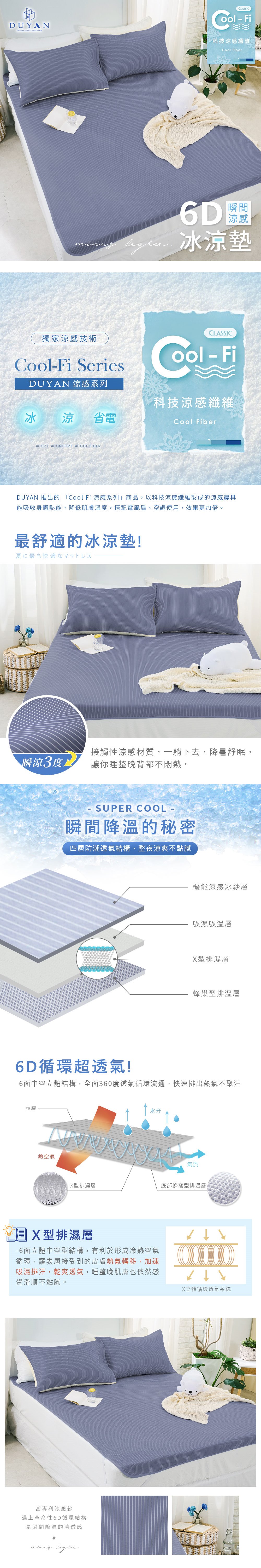 【DUYAN竹漾】Cool-Fi瞬間涼感6D冰涼墊 / 單人/雙人/雙人加大 / 夜霜藍