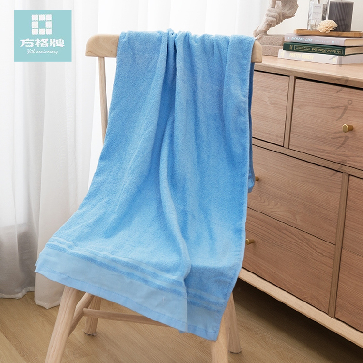 方格牌艷麗浴巾-70x130cm-藍色-2條