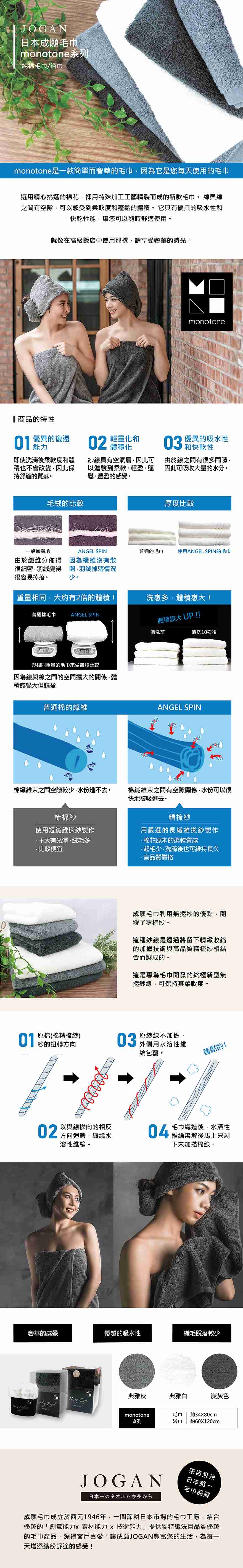 【JOGAN】日本成願毛巾 monotone系列 純棉浴巾