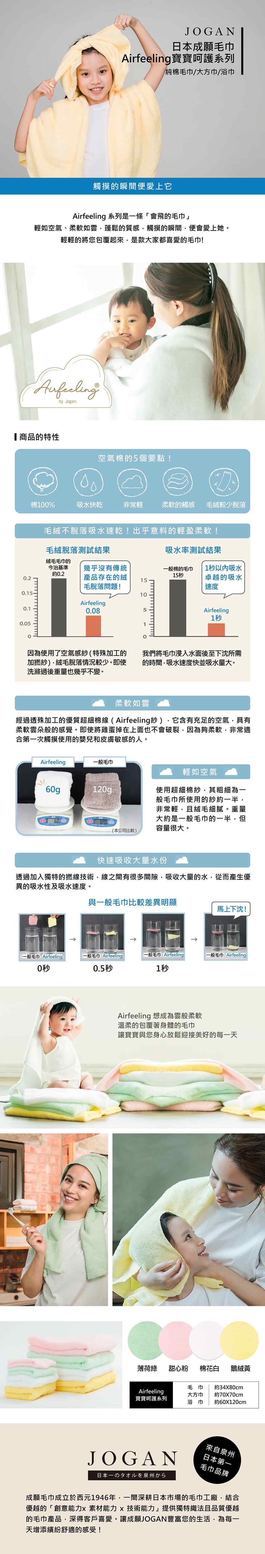 【JOGAN】日本成願毛巾 Airfeeling 寶寶呵護系列 純棉浴巾