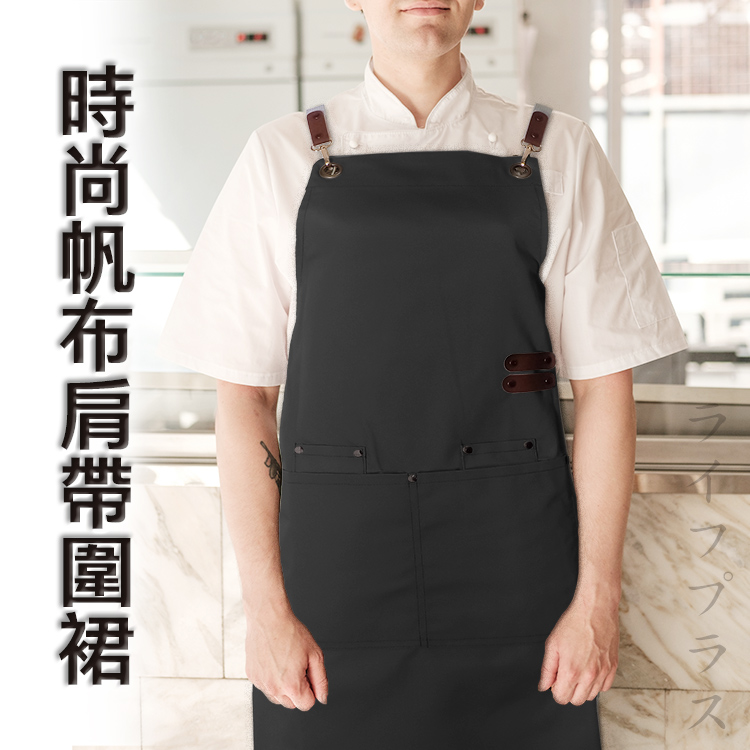 時尚帆布肩帶圍裙-紳士黑-2件