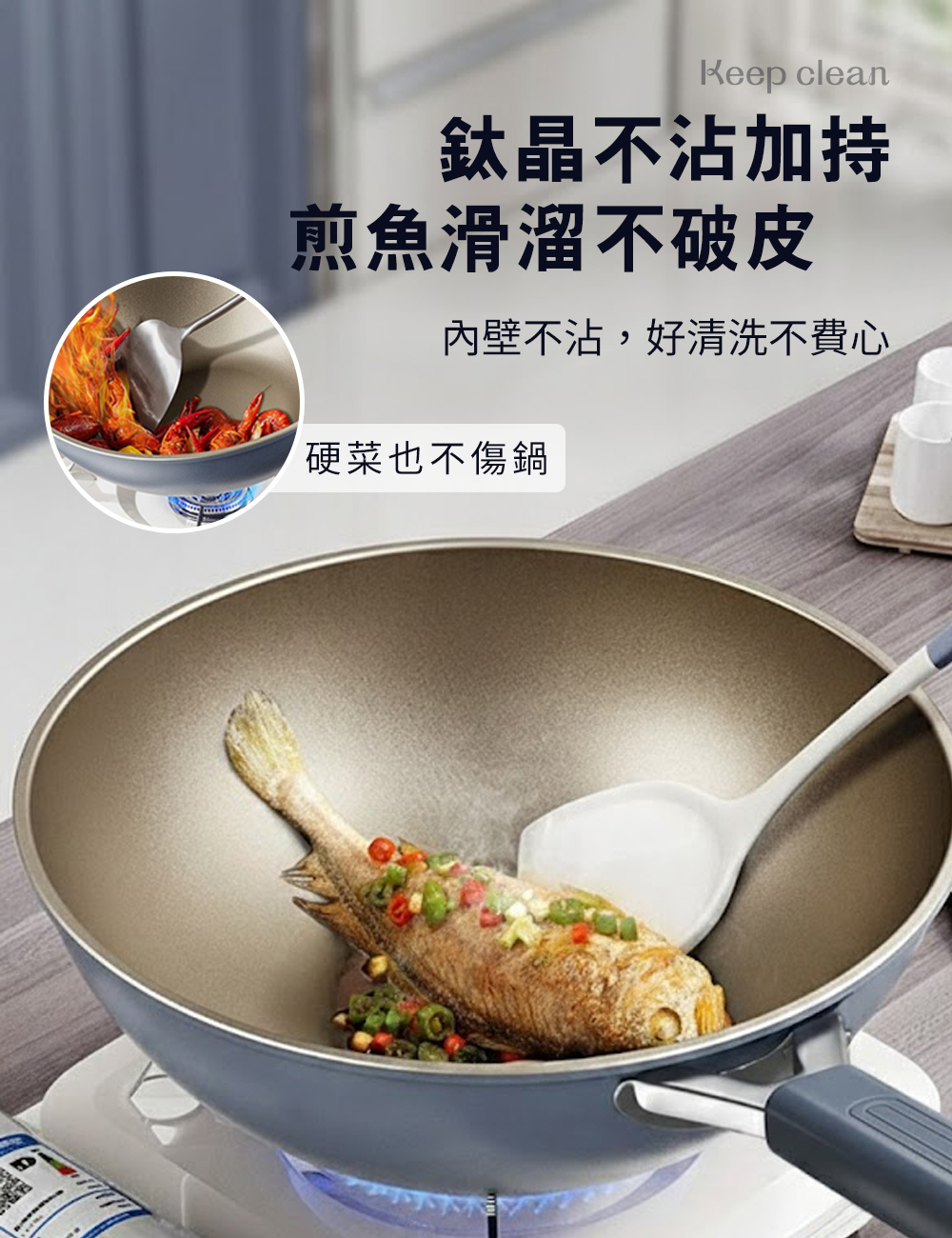 【廚藝寶】有鈦不沾炒鍋32cm+蓋(附硅膠鏟+菜瓜布)(K0041-32)