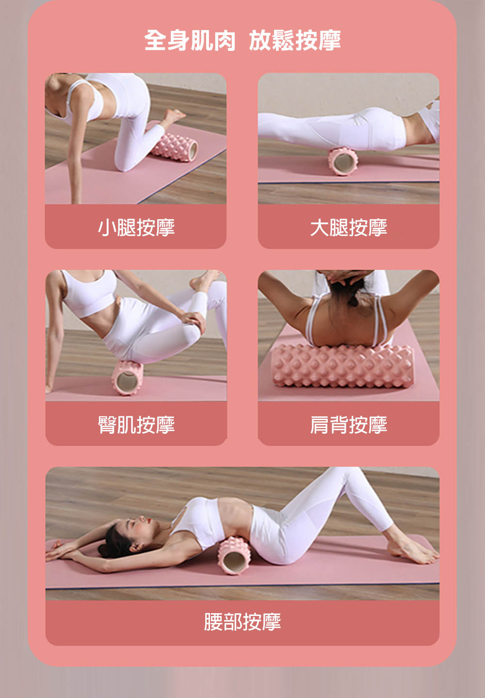 瑜伽滾筒、泡棉(按摩)滾筒、瑜伽滾輪或稱瑜伽棒在國外的名稱是FOAM ROLLER使用這個滾筒來幫助肌肉筋膜的放鬆有眾多運動員及歌手、演員都在使用瑜伽滾筒甚至有專門的課程來介紹它的使用方法運動後,肌肉處於一個經常性緊繃的狀態需要深層的放鬆才不備於產生運動傷害透過瑜伽滾筒的滾動去觸發身體的自生抑制產生真正的肌肉放鬆如此身體的柔軟度及靈活性會變得更加協調身體在休息時就能更深