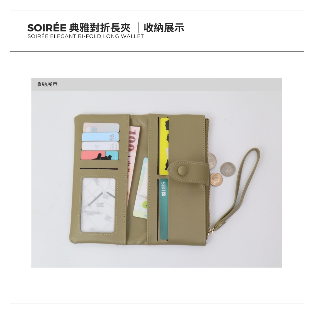 Soirée 典雅對折長夾-黑色 多卡位收納 人氣女用皮夾 女夾鈔票卡片零錢收納包