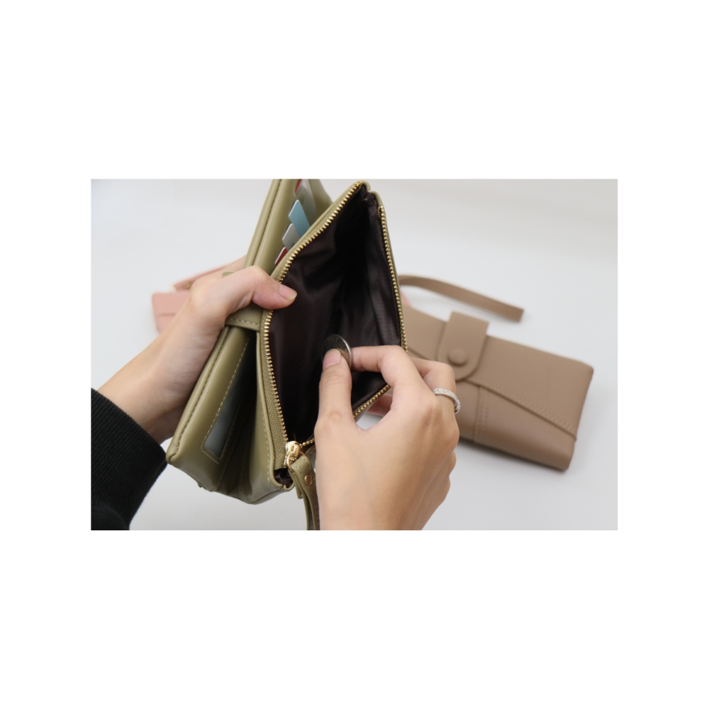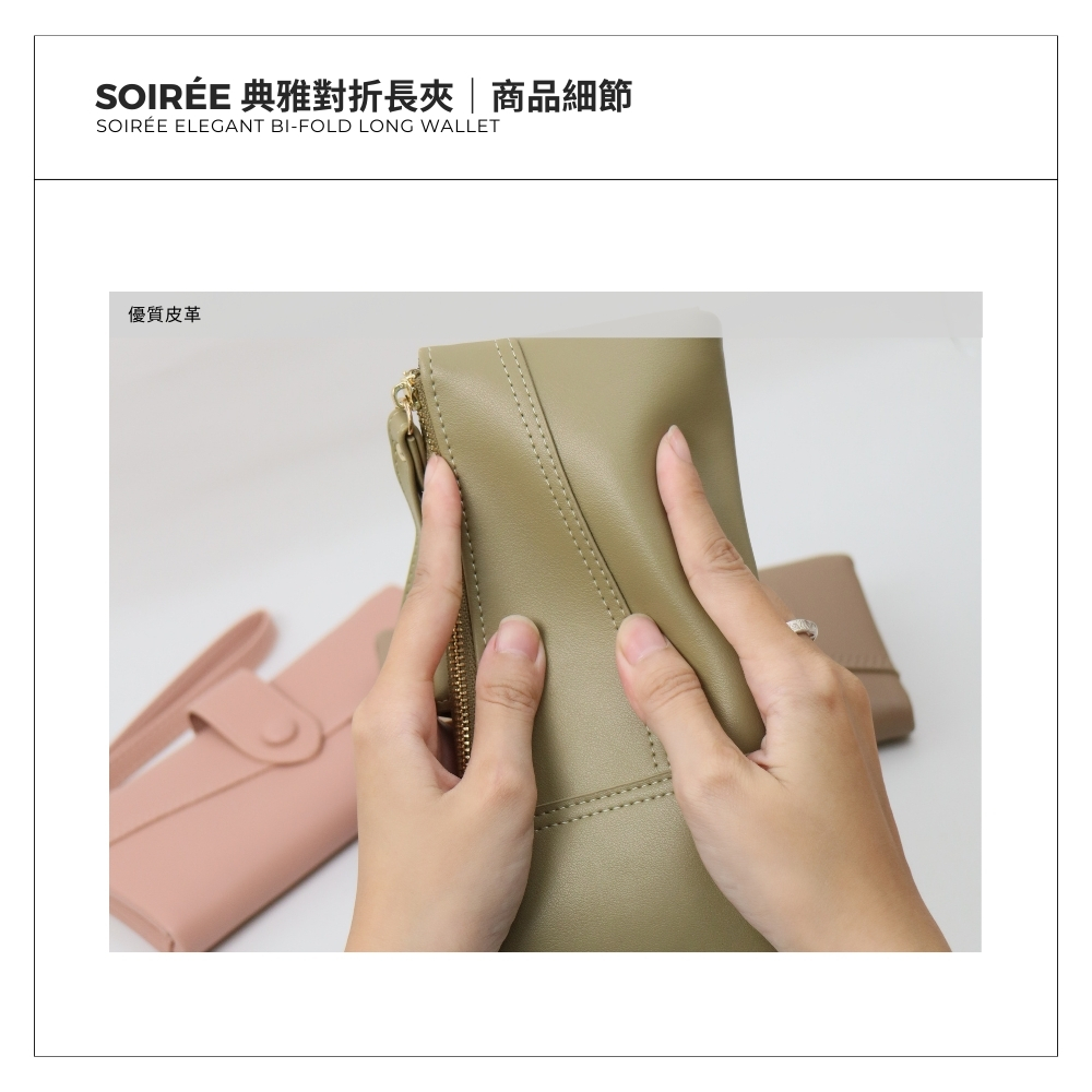 Soirée 典雅對折長夾-卡其 多卡位收納 人氣女用皮夾 女夾鈔票卡片零錢收納包
