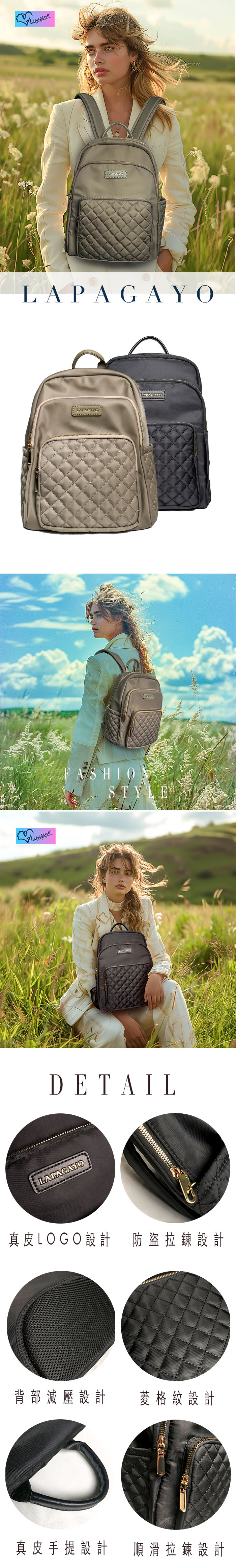 【lapagayo】歐洲訂製小香格紋精品後背包- PI-06417A-1-09黑色