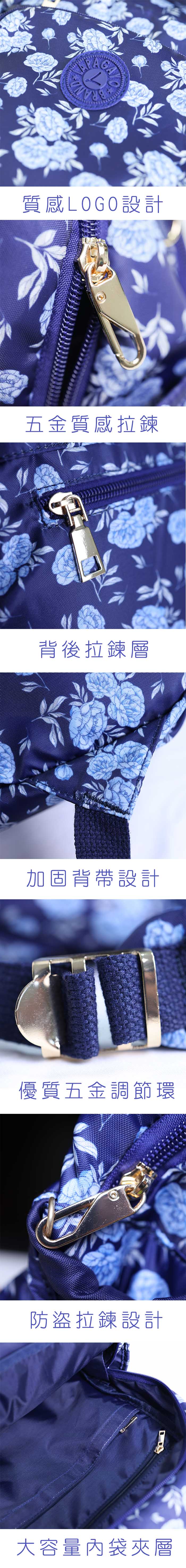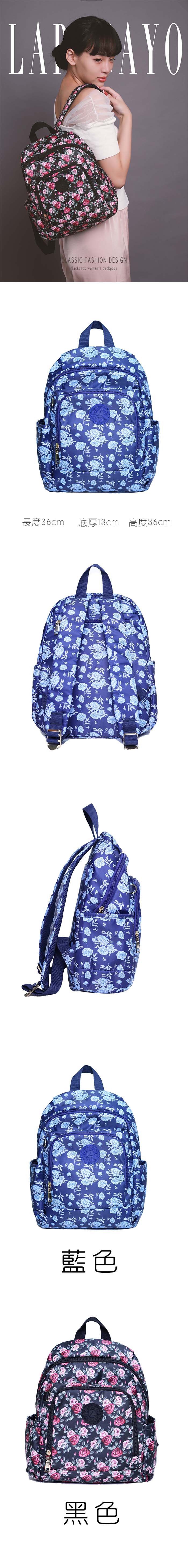 【lapagayo】典雅玫瑰尼龍後背包-PI-06399A-1-56藍色